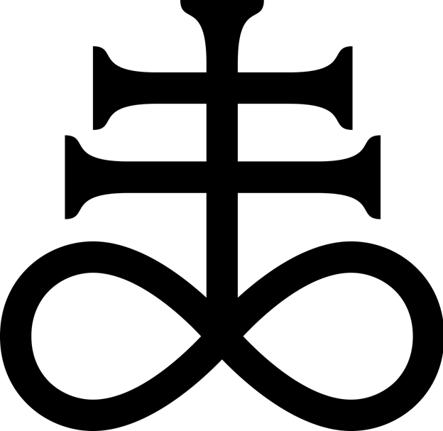 One of the symbols for sulphur in alchemy is also known as the Satanic cross or Leviathan cross. It consists of the symbol for infinity topped with a double cross.